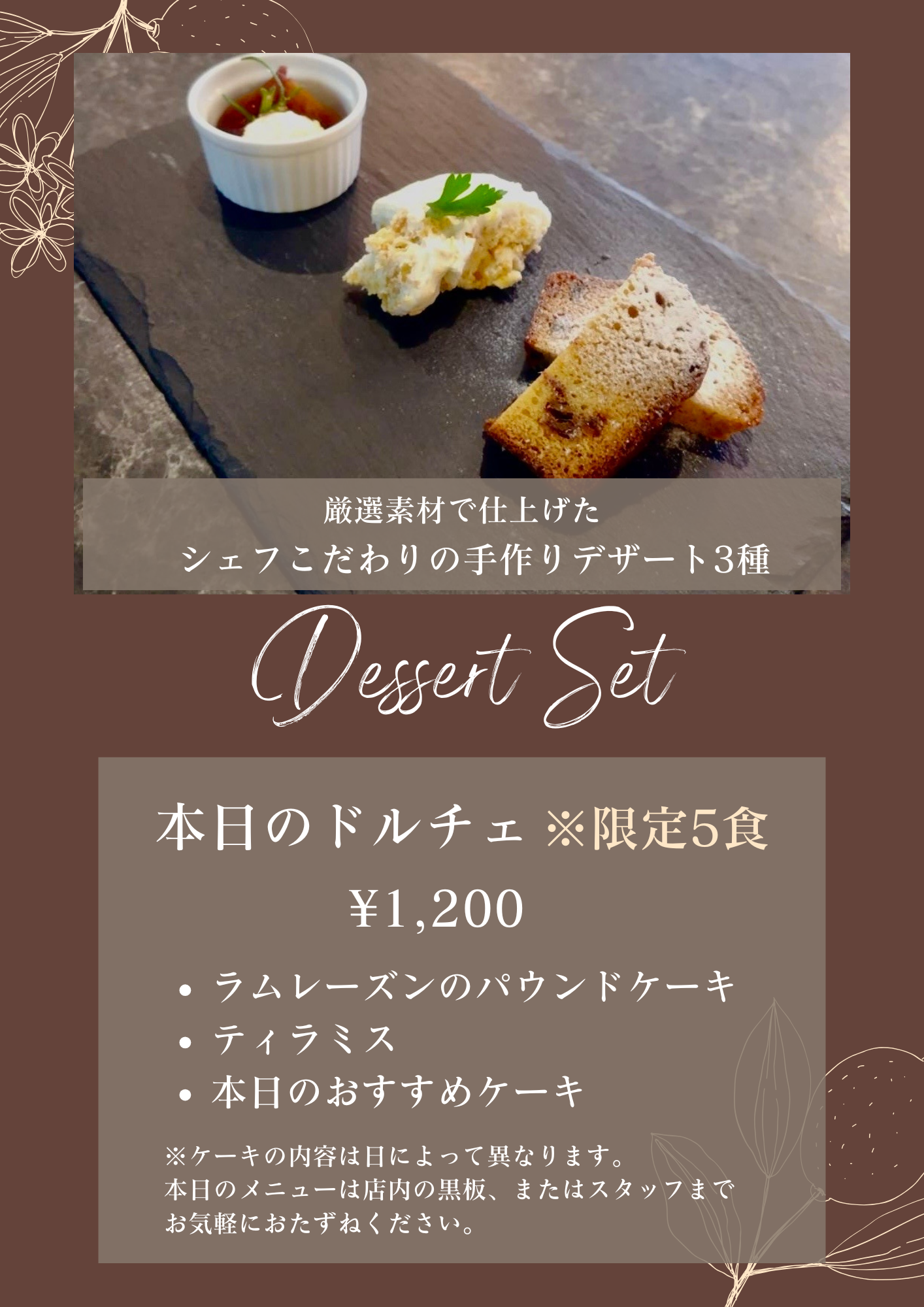 「ラムレーズンのパウンドケーキ」「ティラミス」「本日のおすすめケーキ」など、日替わりとなっています。