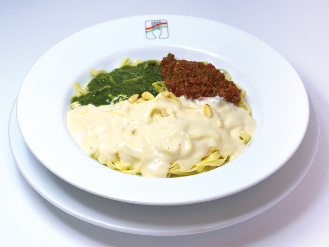 緑色のホウレン草、白色の卵、赤色のトマトと3種のフレーバーを練り込んだ自家製生パスタを、それぞれの持ち味を活かした豊富なソースで仕上げました。ぜひご賞味ください。